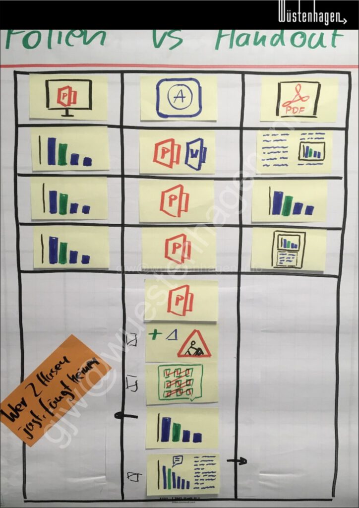 Ausdruck der gezeigten Folien: Sind die Folien für das Präsentieren ausgerichtet und geeignet wird zwar der Aufwand gering sein – aber auch der Nutzen, da Details fehlen.