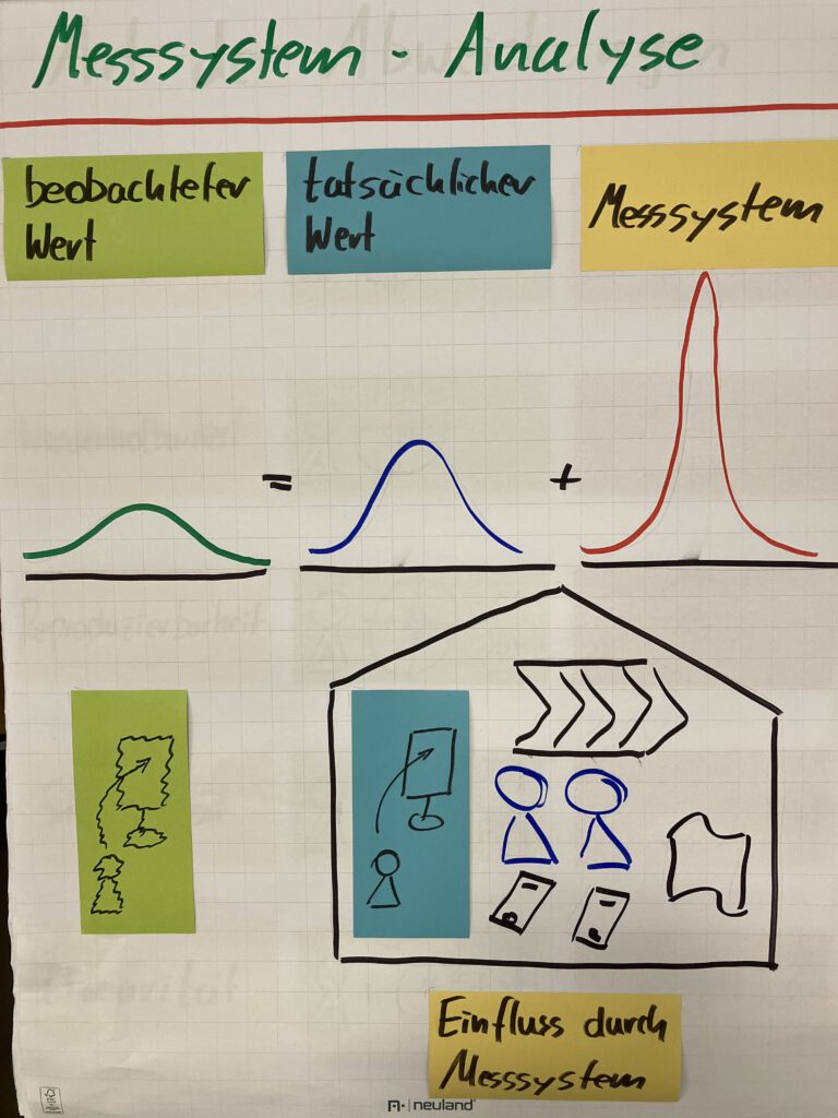 Die Messsystemanalyse ermittelt, wie groß der Einfluss der Varianz des Messsystems auf den Messwert und dessen Varianz ist. Somit lässt sich eine Aussage über die Qualität des beobachteten Messwertes und dessen Varianz treffen (vgl. Montgomery, 2009).